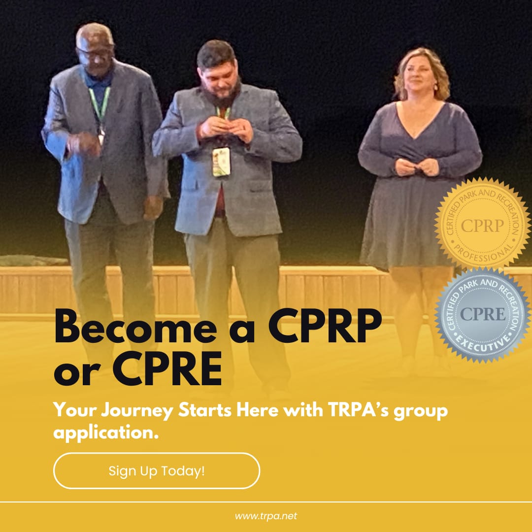 Register as part of TRPA's group registration to sit for NRPA's CPRP or CPRE exam. Once our group registration is submitted, you will be contacted by NRPA to complete their application. Please make sure you meet their qualifications before signing up.